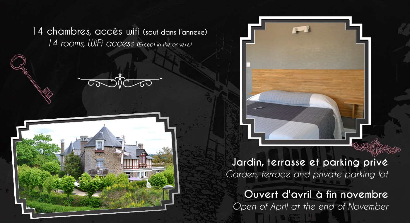 La bâtisse fut un vrai moulin à blé de 1415 à 1918. Aujourd’hui, venez retrouver l’ambiance des pensions de famille d’antan sur la Côte d’émeraude. Pour nous écrire voici l'adresse email contact@hotel-le-vieux-moulin.com